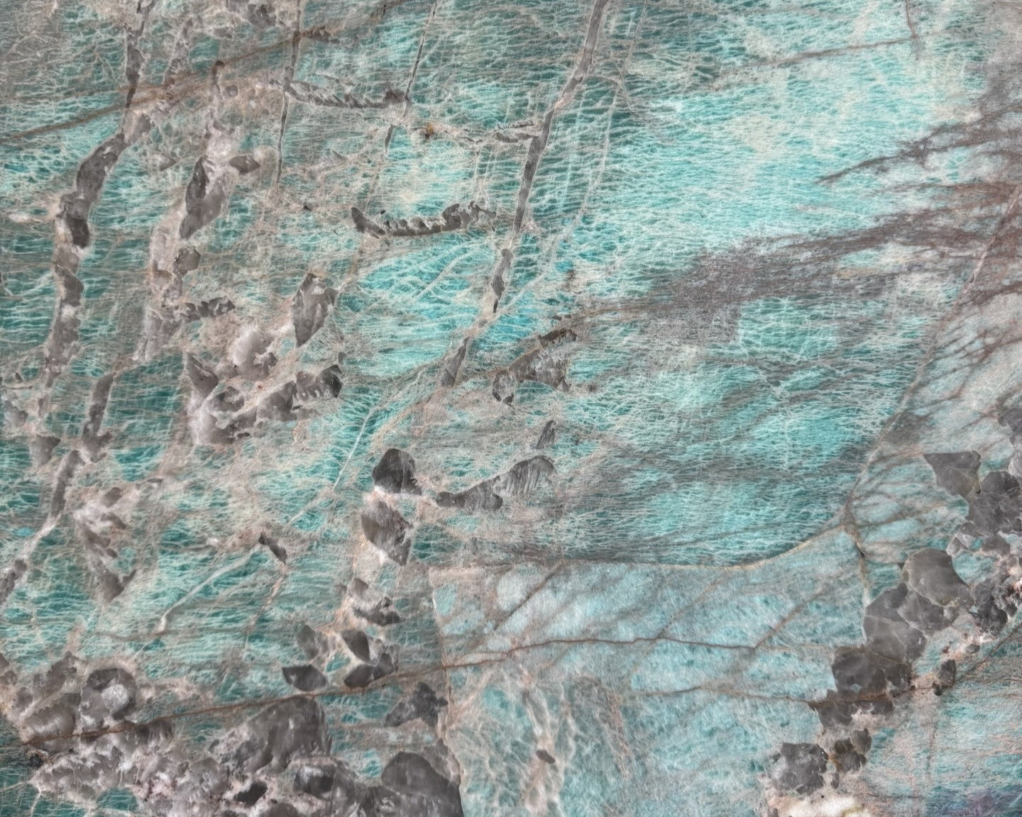 Amazzonite Top bold color of rare beauty makes Amazonite a perfect choice if you seek a show stopper. The emerald green and contrasting amethyst tones unite to take your breath away.