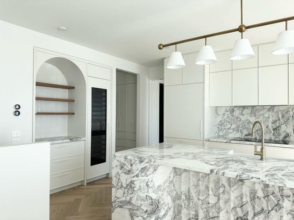 Arabescato Vagli marble, a masterpiece in stone. It's surface is a symphony of ethereal hues, where delicate veins of milky white intertwine with whispers of ash gray and hints of celestial blue. These sinuous veins dance across the marble with grace, evoking visions of ancient rivers carved in far away realms. Arabescato Vagli marble is a treasure coveted by connoisseurs of opulence, sought after for its beauty and unparalleled elegance. Whether adorning majestic countertops, adulating flooring, or gracing walls, this marble bestows an aura of timeless grandeur upon any space, transforming it into a sanctuary of transcendent beauty.