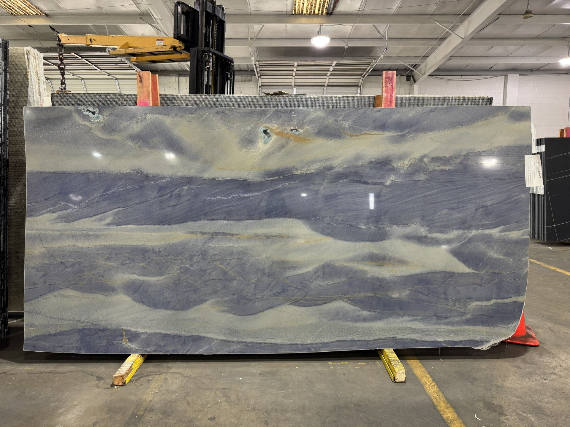Blue Macaubas Marble, a masterpiece crafted by the hands of nature. This show stopper, with mesmerizing shades of azure and cerulean, reminiscent of the boundless expanse of the heavens. Veins of glistening white and blue traverse the surface like celestial rivers, evoking a sense of cosmic wonder and tranquility. Blue Macaubas slabs are adored world wide, revered for theirbold color tones and timeless allure.