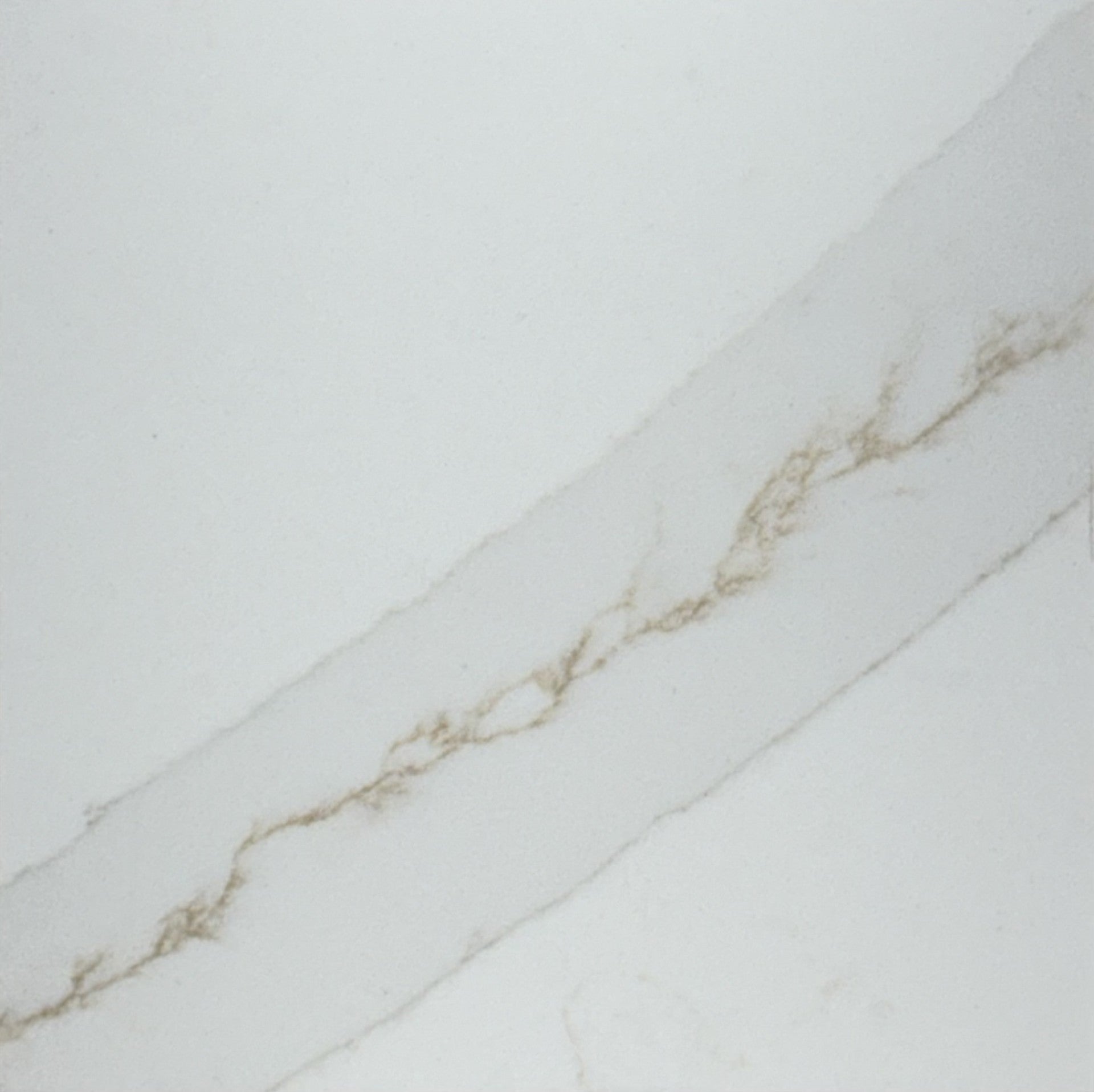 Spruce up any environment with our Calacatta Eternal 209 Quartz. It is one of our most popular colors due to its unique blend of thick grey veins comingled with thin grey and gold veins on a clean white background. This low maintenance, marble look quartz will give your business or home an elegant refinement that can light up any room.