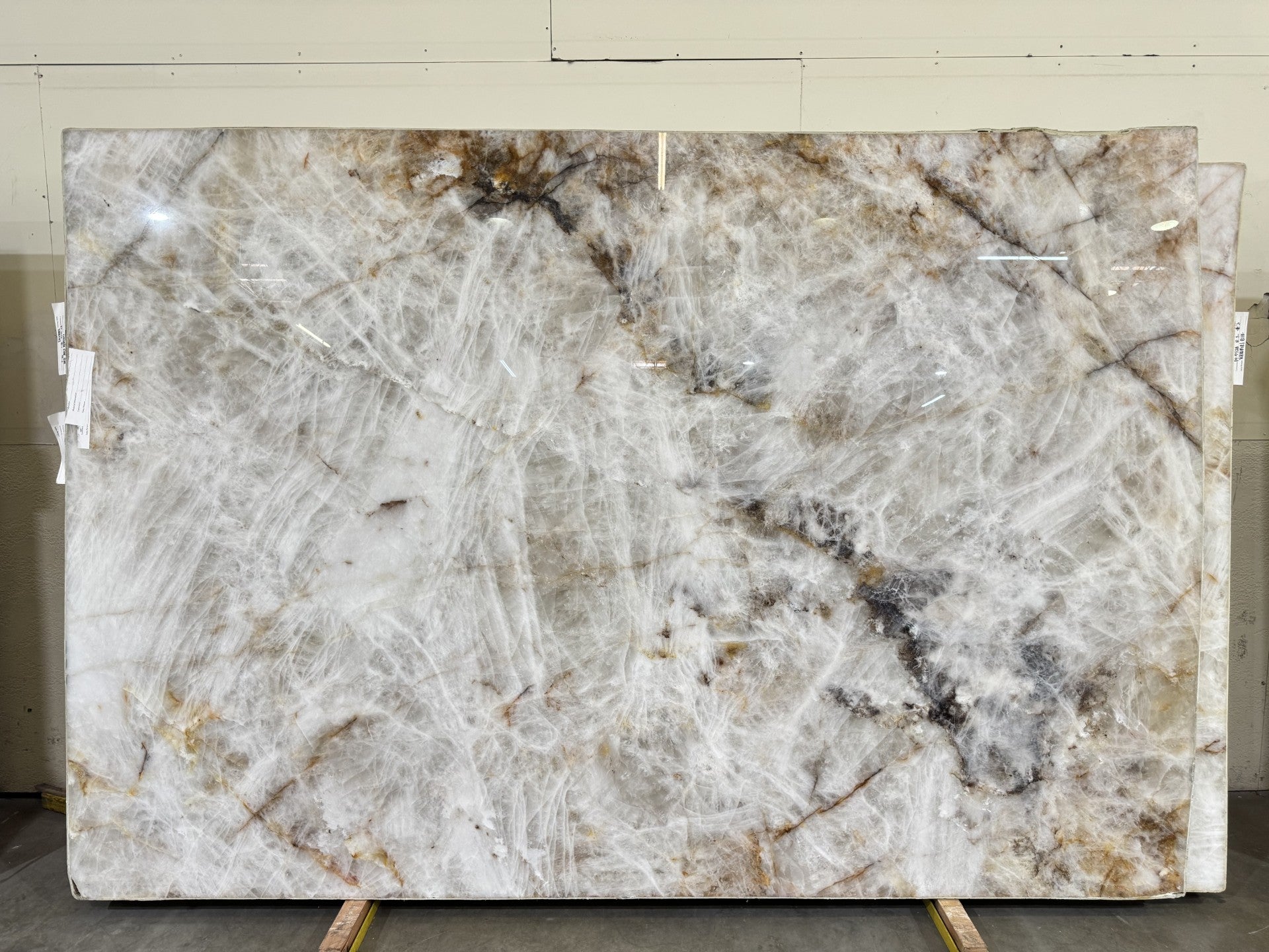 Cristallo Fire feature warm and fiery colors, such as shades of red, orange, yellow, or gold, creating a vibrant and captivating palette. The colors may blend seamlessly or form distinct patterns within the creamy background tones in the stone.