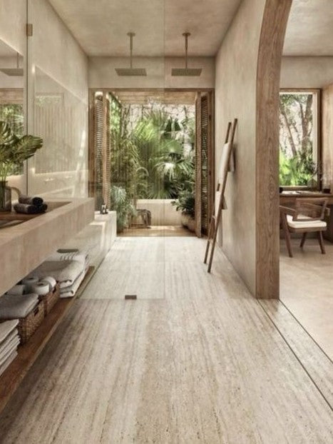 Ivoria vein cut travertine tile is consistent with a variety of warm hues that are seen sprawled throughout the ivory travertine tile's surface. Vein cut indicates that the travertine is sliced to accentuate the veins and movement in the travertine. The natural stone is finished with a filled and honed tile surface that is perfect for indoor and outdoor spaces. Select this light travertine color to accentuate your space as a surface that will last a lifetime.