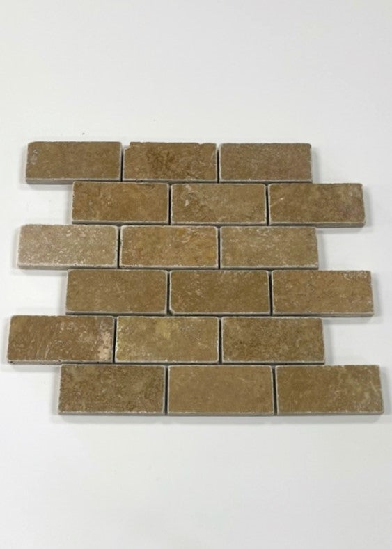 The milk chocolate tones presented in this travertine mosaic are sure to bring a warm comforting feeling. The luxury of travertine with this rustic finish is ideal for a waterline tile for your pool or to give your home a more traditional feel!