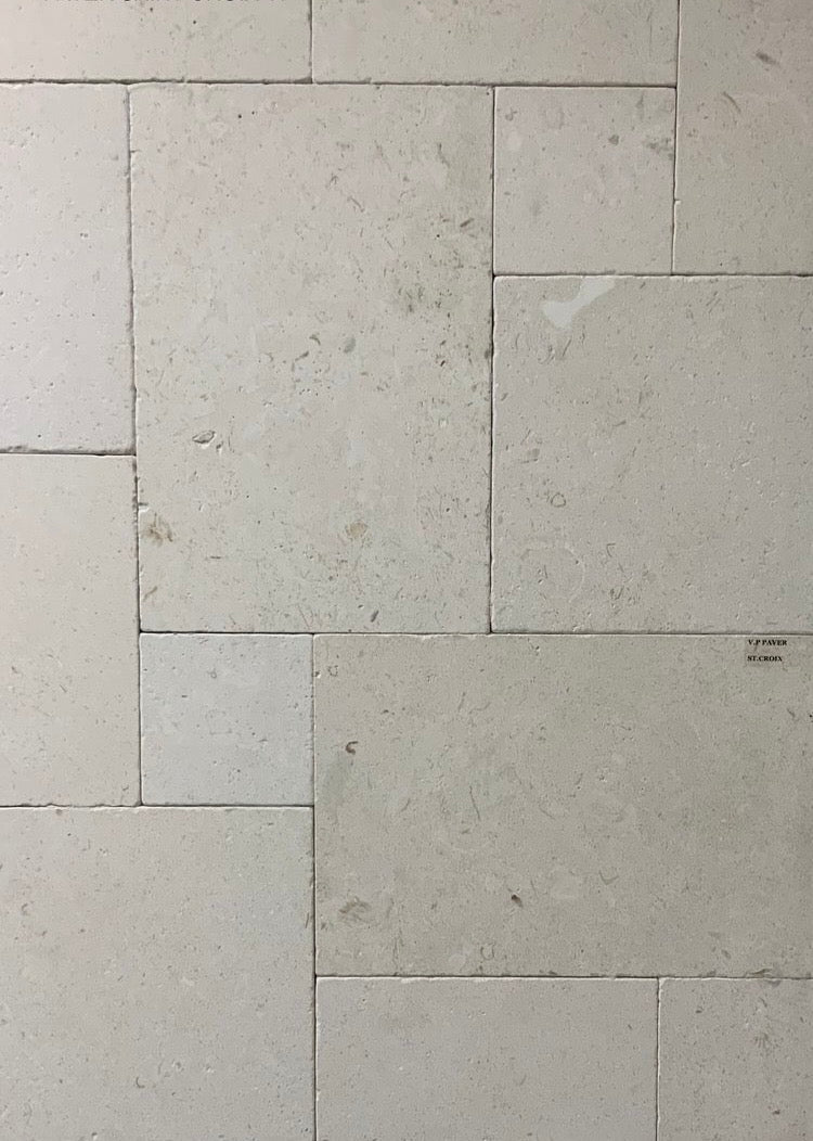 Saint Croix is an excellent option for outdoor landscapes. Some refer to this beauty as Shellstone. Shaped from high-quality limestone, it features a tumbled finish, a very light tone and a dynamic Versailles pattern. With a thickness of 3cm, it offers both elegance and durability, making it suitable for various outdoor applications such as patios and walkways.