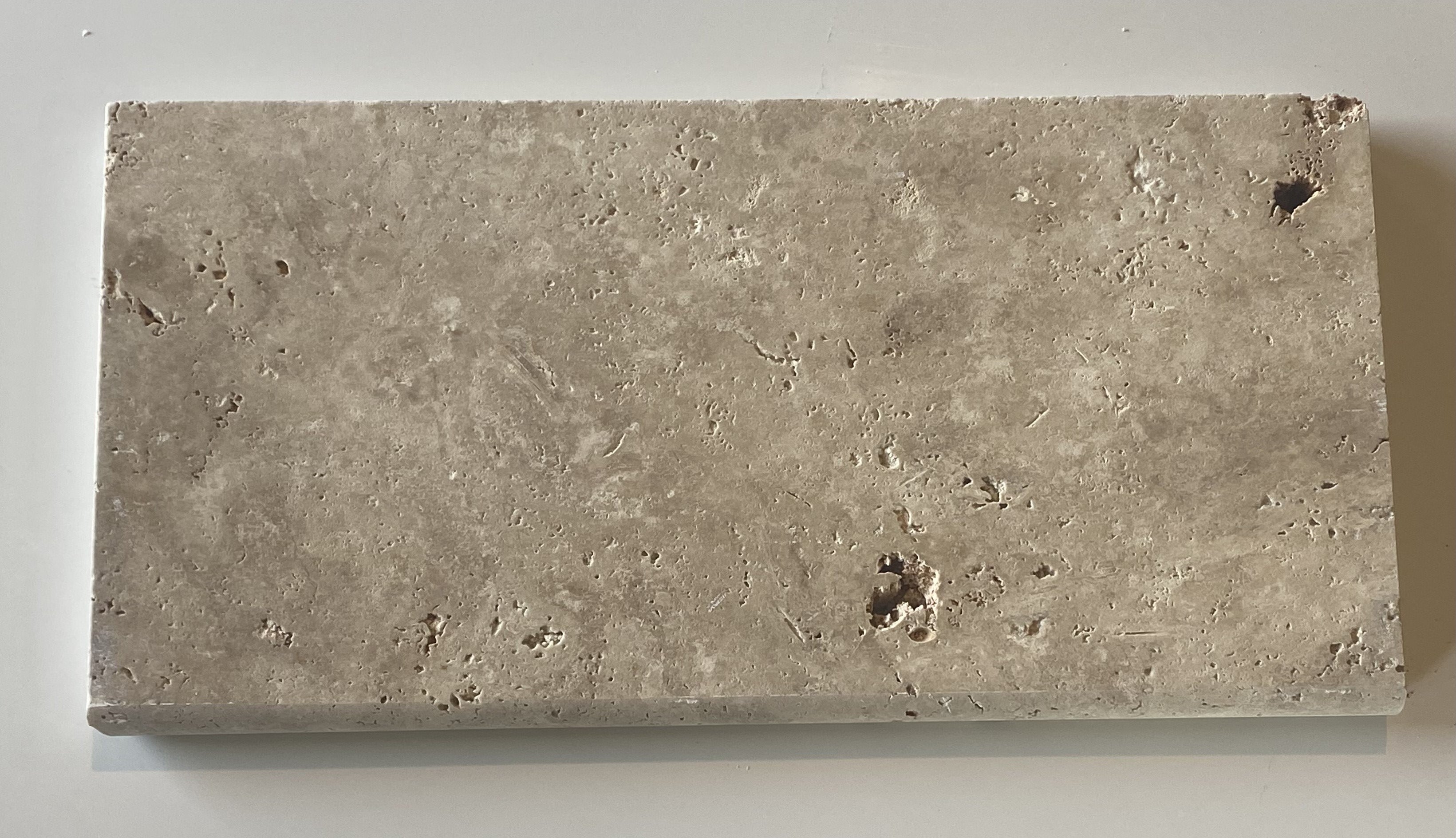 This travertine pool coping will be a serene addition to poolside retreats. Crafted from travertine with a gentle light brown hue, it exudes warmth and tranquility. With dimensions of 12x24 and a thickness of 3cm, it offers durability and lots of coverage, ensuring a secure border for pools or stair treads.