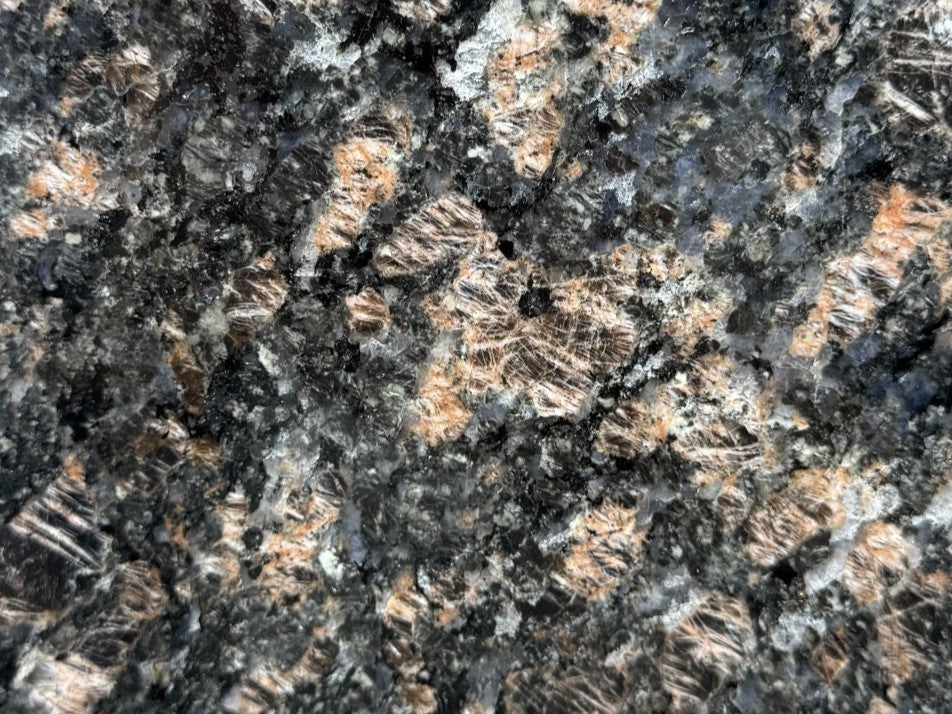 Complementing the dark brown and black features are the grey speckles, which introduce a softer contrast to the composition. These grey flecks range from light, almost silvery tones, to medium shades of grey, interspersed throughout the natural stone countertop. They add a layer of complexity and help to balance the darker elements, ensuring that Tan Brown Granite maintains its elegant appearance without becoming too overpowering.